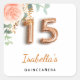Pegatina Cuadrada Quinceanera rosa floral oro eucalipto monograma