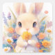 Pegatina Cuadrada Rabbit with Yellow Flower and Spring Wildflower