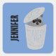 Crea algunos pegatinas personalizados que son perfectos para los fans de los mapaches. Estos pegatinas presentan un lindo ilustracion de un mapache saliendo de un cubo de basura con tu nombre u otro mensaje en negrita con letras negras, todo puesto contra un fondo azul claro.