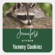 Pegatinas de velas, cocina o jabón con una fotografía de un mapache lindo y curioso reposando su cara en un tronco de madera. Adorable.