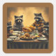 Pegatina Cuadrada Raccoon Family Thanksgiving