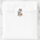 Pegatina Cuadrada Racoon como jugador de baloncesto con baloncesto