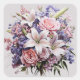 Pegatina Cuadrada Ramo de novia blanco rosa morado