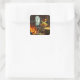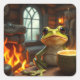 Estos pegatinas presentan una rana tomando café cerca del fuego.