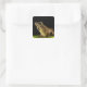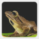Pegatina Cuadrada Rana común sobre fondo oscuro de hoja