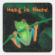 Pegatina Cuadrada Rana De Árbol De Ojos Rojos "¡Aguanta Ahí!"