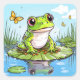 Pegatina Cuadrada Rana mate en una almohadilla de Lily