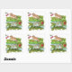 Pegatina Cuadrada Ranas PacMan persiguiendo fruta