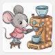Pegatina Cuadrada Ratón Adorable Haciendo Café