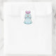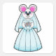 Pegatina Cuadrada Ratón como novia con ramo de flores