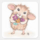 Pegatina Cuadrada Ratón con Bouquet de flores