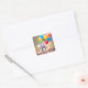 Pegatina Cuadrada Ratón de cumpleaños con globos