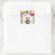 Pegatina Cuadrada Ratón lindo con globos coloridos, personalizable