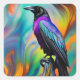 Pegatina Cuadrada Raven morado, fondo de luces del norte