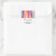 Pegatinas de negocios con un diseño de fondo abstracto. Rayas vibrantes en colores atrevidos y pastel. Rosa, azul, violeta y amarillo combinados con un purpurina fino y brillante de color dorado sobre la parte superior.