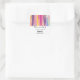 Velas, jabón o pegatinas de productos de cocina con un diseño de fondo abstracto. Rayas vibrantes en colores atrevidos y pastel. Rosa, azul, violeta y amarillo combinados con un purpurina fino y brillante de color dorado sobre la parte superior.