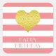 Pegatina Cuadrada Rayas blancas rosadas modernas Feliz cumpleaños