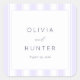Esta elegante pegatina de boda presenta un diseño clásico con un fondo rayado de lavanda y un rectángulo blanco central. Los nombres se muestran de manera prominente en fuentes serif en negrita, conectados por una elegante "y" en letra cursiva, creando un aspecto sofisticado. Perfecta para agregar un toque personalizado a la papelería o regalos de su boda, esta pegatina combina un estilo atemporal con una paleta de colores romántica, ideal para celebrar su día especial.