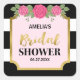Los pegatinas de la moda Bridal Shower Square tienen un falso borde dorado, rayas blancas y negras y algunas rosas rosas rosas. Úsalo para sellar los sobres de la ducha de novia, los bolsos de bienvenida o la decoración. Consulta la invitación a ducha de novia coincidente en mi tienda aquí -> http://www.zazzle.com/black_white_stripes_roses_bridal_shower_invitation-256841483832769937?rf=238364477188679314 Personalízalo con tus detalles reemplazando el texto del marcador de posición. Para obtener más opciones, haga clic en el botón "Personalizar". *Tenga en cuenta que la marca de agua Zazzle que aparece en la vista previa del zoom NO aparecerá en el producto impreso final. © Rosewood y Citrus