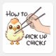 Recoge a las chicas, dice gracioso, pegatinas. Una sola línea, graciosa. Pollos, pollos, palillos. "Cómo recoger chicas". Pun, juega con las palabras, insinuando.