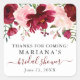 Pegatinas de recuerdo de despedida de soltera con flores acuarelas rosadas y borgoña para decorar mesas de fiesta con elegante letra
