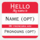 Un diseño pegatina limpio y minimalista con las palabras "Hola, mi nombre es" y "Mis pronombres son". Si necesita sus propios pegatinas preimpresos, introdúzcalos. En caso contrario, deseleccione el nombre y pronombre para uso general. Esto permite a los asistentes a la reunión compartir su nombre y pronombres. Crear un ambiente inclusivo y abierto con este pegatina simple pero impactante. Esto fomenta un entorno de comprensión y respeto, fomenta la comunicación abierta y ayuda a crear un entorno comunitario más inclusivo.