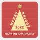 Pegatina Cuadrada Red Minimalist Christmas Tree Name