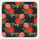 Pegatina Cuadrada Red Roses, Black Background,