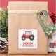 Pegatinas decorativos perfectos para fiestas y sobres. Cuenta con un tractor rojo con ruedas gigantes. Paleta de colores rojo, blanco, negro y gris. Añadir el mensaje de su fiesta.