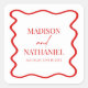 Pegatina Cuadrada Red White Elegant Wavy Border Wedding