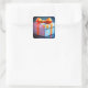 Pegatina Cuadrada regalo con cara, emoji wow, arco naranja, alta cal