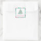 Pegatina Cuadrada Regalo de árbol de Navidad verde y rosado