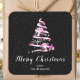 Pegatina Cuadrada Regalo de cinta rosada y negra navidad feliz