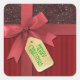 Pegatina Cuadrada Regalo navideño de la cinta roja
