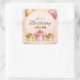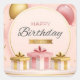 Pegatina Cuadrada regalos felices de cumpleaños torta de amor globos