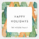 Pegatina de Felices Fiestas. Un minimalista y sencillo diseño de árboles de Navidad multicolor.