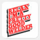 Un diseño gracioso para soldadores, trabajadores de máquinas o personas que tienden a romper las cosas. Cartas en negrita, en bloque, con una apariencia 3d que decía "Relájate, soy un buen soldador de Bonito"