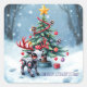 Pegatina Cuadrada Reno ciberpunk lindo con árbol de Navidad
