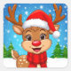 Pegatina Cuadrada Reno personalizado con Santa Hat