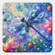 Pegatina Cuadrada Resumen caprichoso Dragonfly Floral Verde azulado