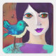 Pegatina Cuadrada Resumen Chica y pájaro púrpura y Verde azulado