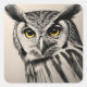 Pegatina Cuadrada Retrato de búho - sketch de carbón vegetal