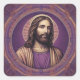 Pegatina Cuadrada Retrato de Jesús en tono púrpura psicodélico