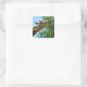 Pegatina Cuadrada Retrato de perfil de la hoja comiendo jirafas