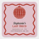 La pegatina cuadrada de fin de semana de despedida de soltera "The Retro Wave Pink and Red Last Disco" estalla con un vibrante nostalgia y un aire de festividad. Situada sobre un suave fondo rosa claro, la pegatina está enmarcada por una llamativa onda roja, que transmite una sensación de movimiento dinámico y emoción. En el centro del diseño, una radiante bola de discoteca roja toma el protagonismo, capturando la esencia de una celebración de discoteca animada y llena de espíritu.