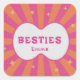 Pegatina Cuadrada Retro Besties Pink & Orange Sunburst Personalized