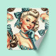 Pegatina Cuadrada Retro Cute Classic Pinup