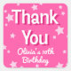 Pegatina Cuadrada Retro Estrellas Rosadas Feliz Cumpleaños