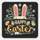 Pegatina Cuadrada Retro Floral Happy Easter Bunny Boho Spring