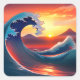 Pegatina Cuadrada Retro-reimaginación de la gran ola